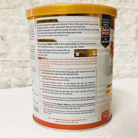 Sản phẩm dinh dưỡng sữa công thức Nepro 1 Gold được sản xuất dựa trên các khuyến cáo về dinh dưỡng của các chuyên gia y tế. Hàm lượng và tỷ lệ vitamin và khoáng chất được thiết kế một cách khoa học giúp cung cấp đầy đủ dinh dưỡng thiết yếu cho người bệnh suy thận. Người có Ure huyết tăng hoặc người cần giảm Potein trong chế độ ăn hàng ngày.